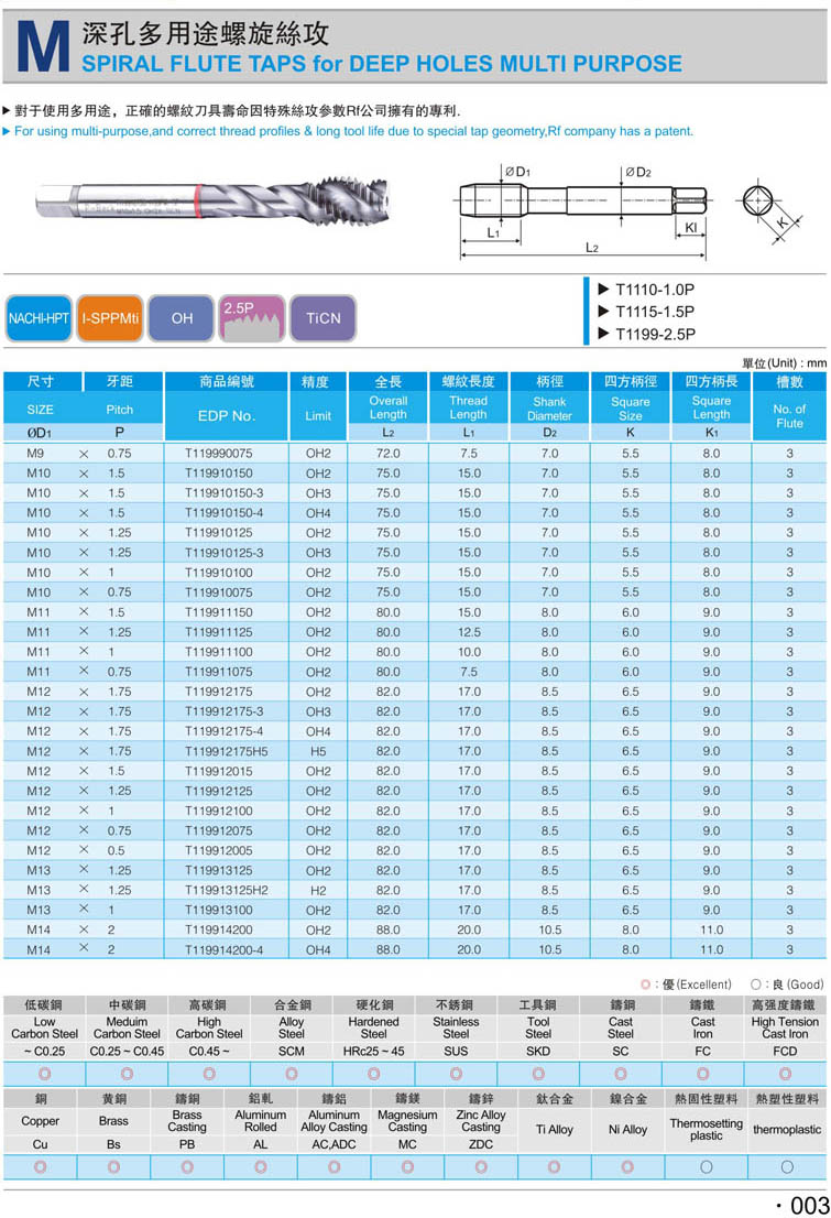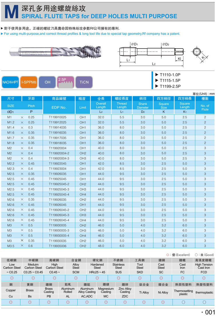 1. 公制螺旋鋼件絲攻001