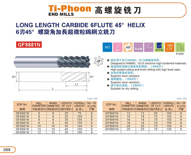 14. 6刃加長超微粒鎢鋼立銑刀069-2