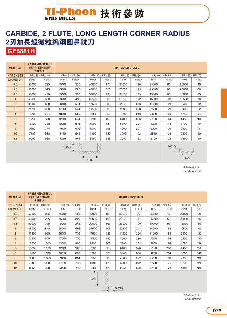 8. 2刃加長超微粒圓鼻鎢鋼立銑刀064