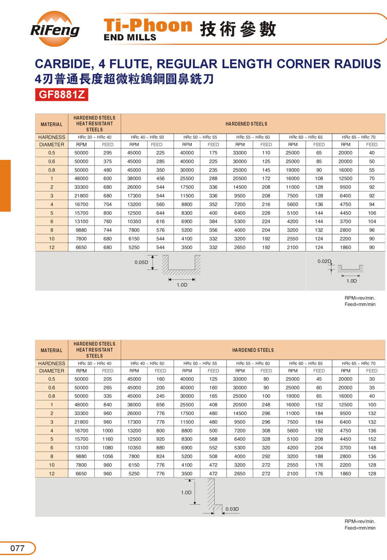 9. 4刃超微粒圓鼻鎢鋼立銑刀065