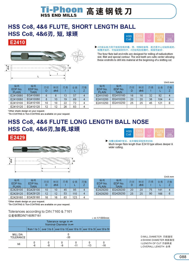 2刃短刃球型白鋼銑刀088-1