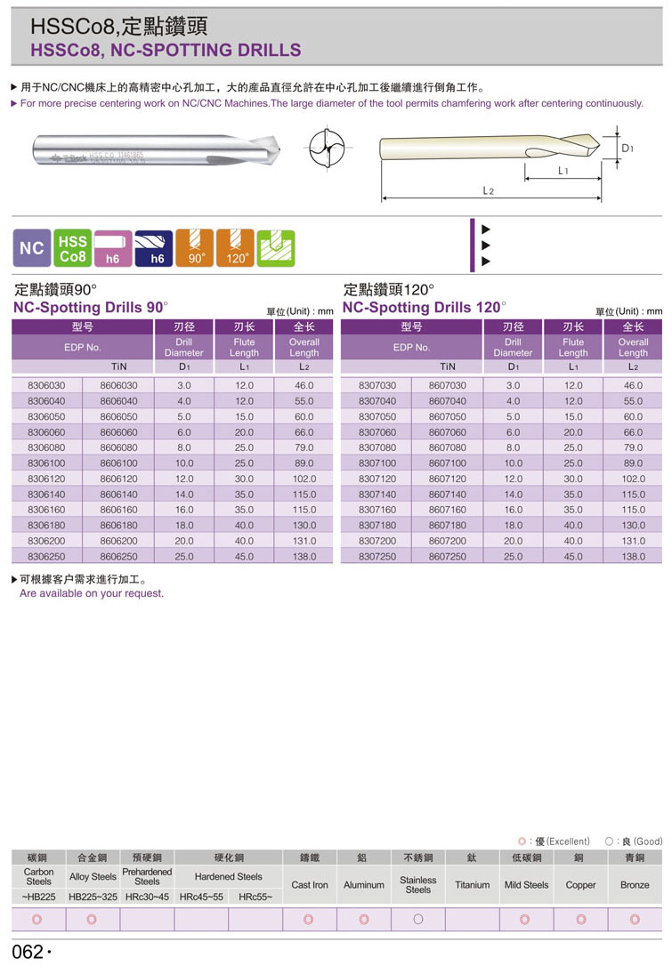 NC90度定點鑽 HSS CO(062-2)