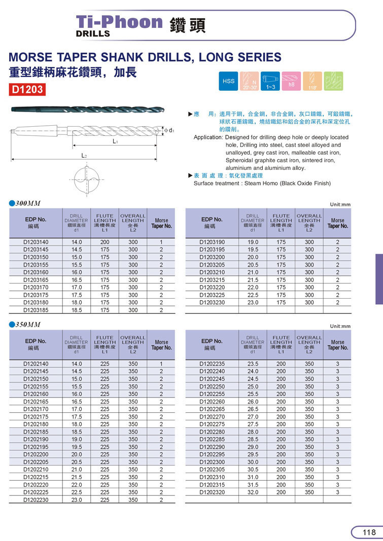 HSS加長斜柄鑽頭118
