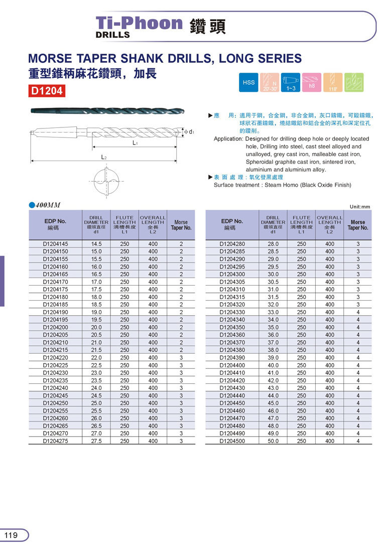 2. HSS加長直柄鑽頭109