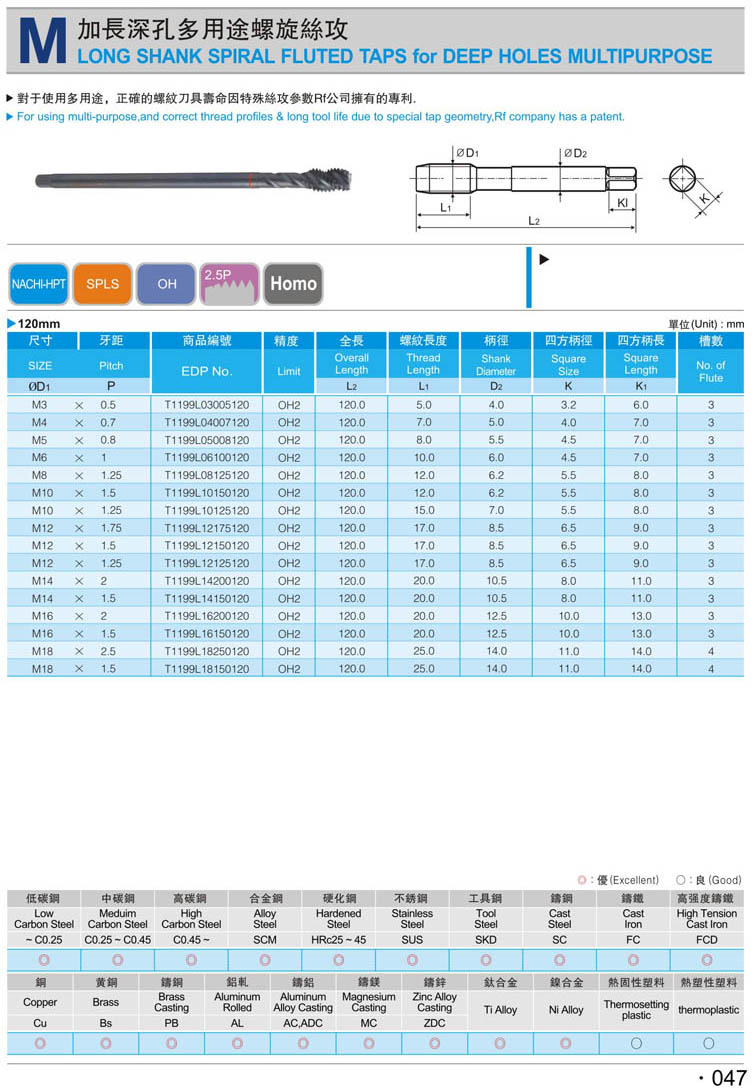 29. 加長公制先端鋼件絲攻050