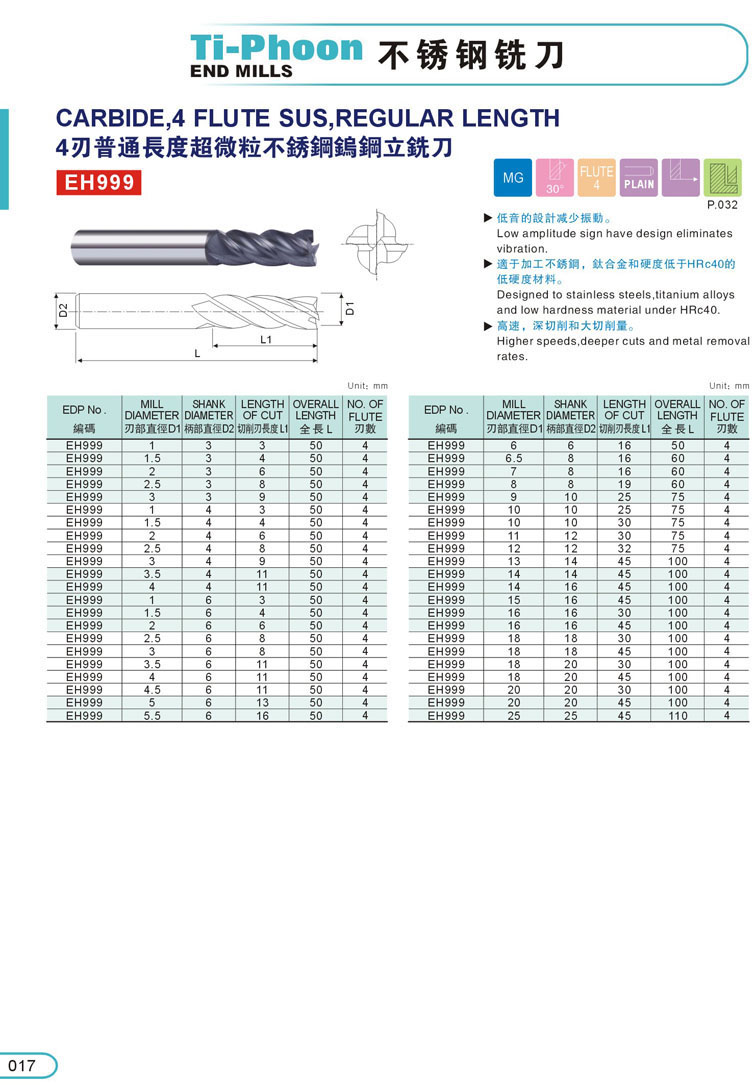 1. 4刃不銹鋼立銑刀017