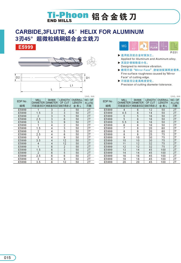 3刃鋁合金銑刀 015