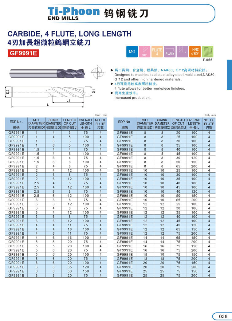 4. 4刃加長超微粒鎢鋼立銑刀038